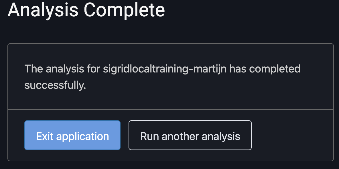 After the analysis has completed, you will see the following confirmation message. This indicates Sigrid Local has successfully completed its analysis, and has published the analysis results to Sigrid. That means you’re done!